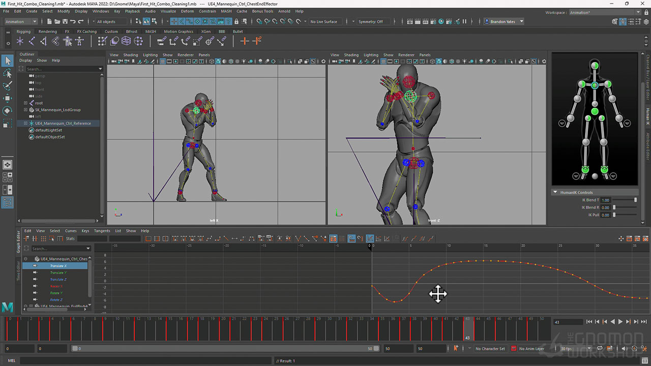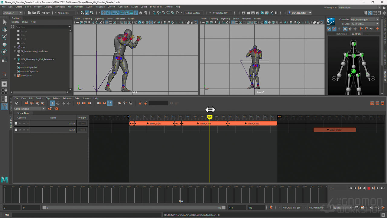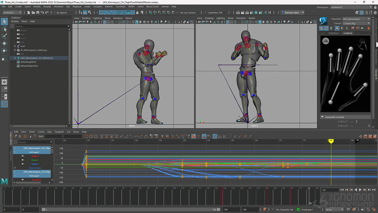 Learn how to animate a three-hit combo for videogames using motion capture as a base. This is an advanced workshop for animators looking to use mocap for games, detailing Maya’s Human IK motion-capture package, including the retargeting and animation settings.
