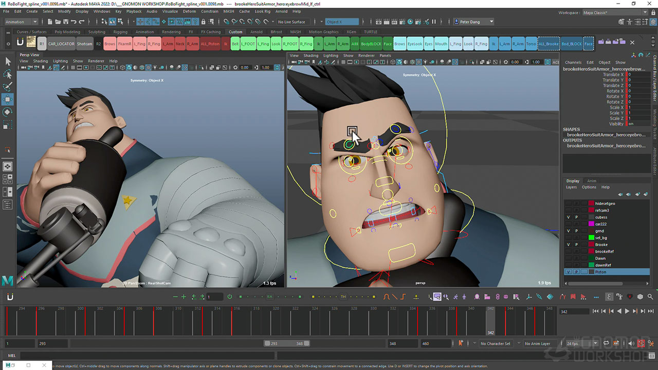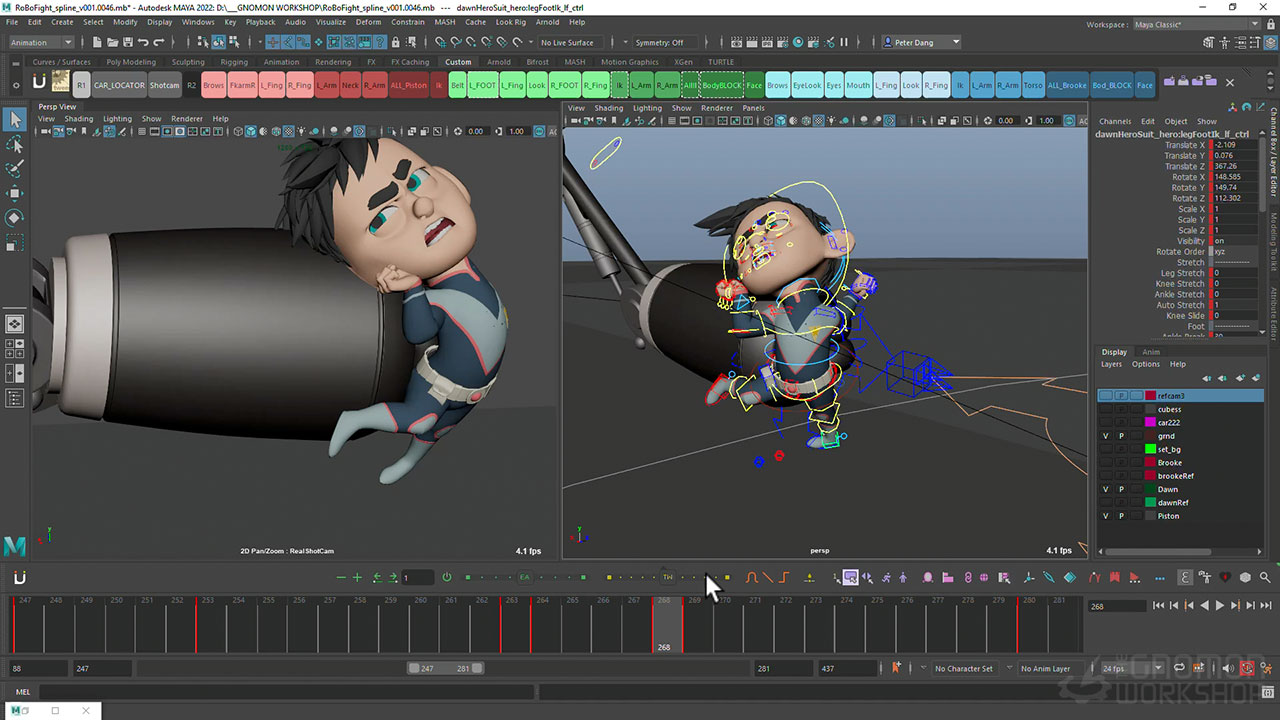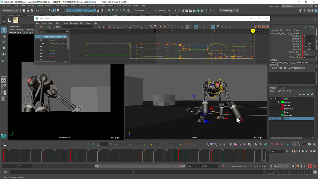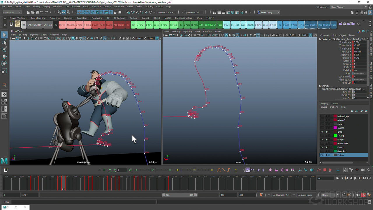 In this advanced animation workshop, Peter Dang walks through his process for animating multiple characters with moving cameras and details how to animate a body slam! From planning and shooting references to spline-blocking (splocking!), creating a straight-ahead animation, creating multiple character physical interactions, and working with moving cameras, Peter’s workshop is a thorough insight to help demystify complex animation shots. Peter also shares his polishing techniques for a clean final result.