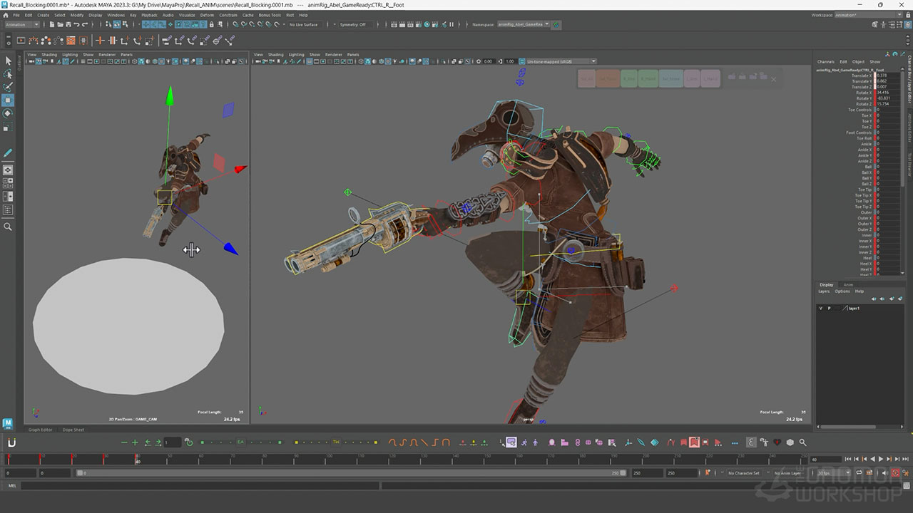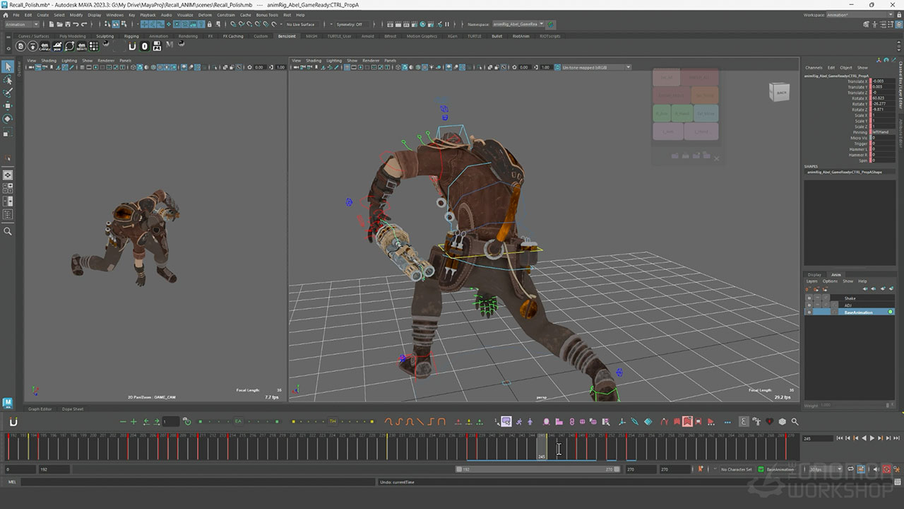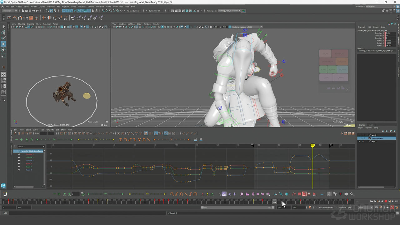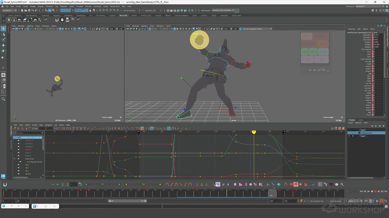 This comprehensive workshop details the complete pipeline to create a game-ready recall animation, from ideation through the final polishing phase. Covering a variety of techniques, including snappy timing, strong poses, and moments of pause, Benjamin instructs how to achieve a stylized look efficiently. He demonstrates his personal ideation methods using Clip Studio Paint to sketch, and details the tools he uses within the animBot plugin for Maya to achieve a faster workflow.