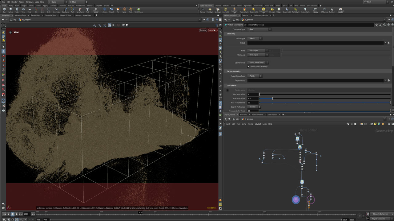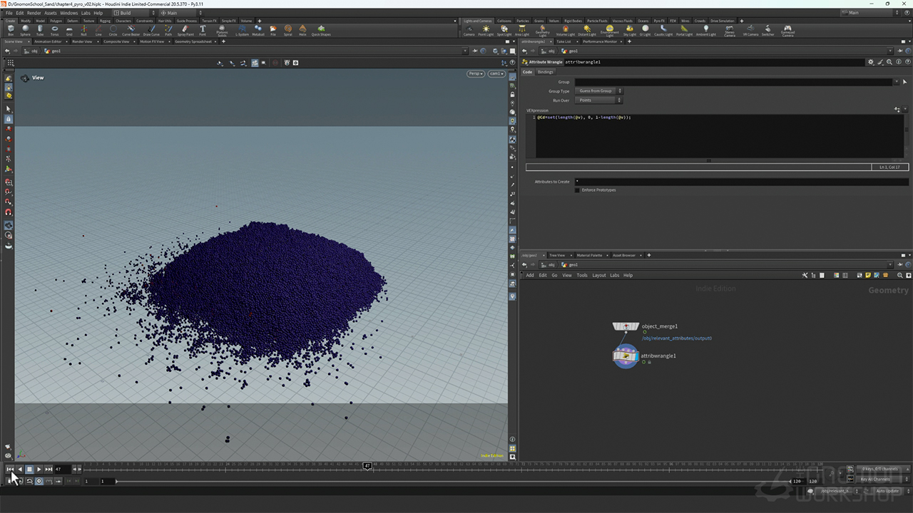 This 3-hour workshop begins by delving into the use of Vellum grains and combining them with Pyro simulations to create a variety of sand textures, ranging from fine, dust-like particles to denser clumped sand. Alvaro details the crucial attributes of both Vellum and Pyro, empowering artists with the confidence to tweak these parameters for the desired effects in their own sand simulations.