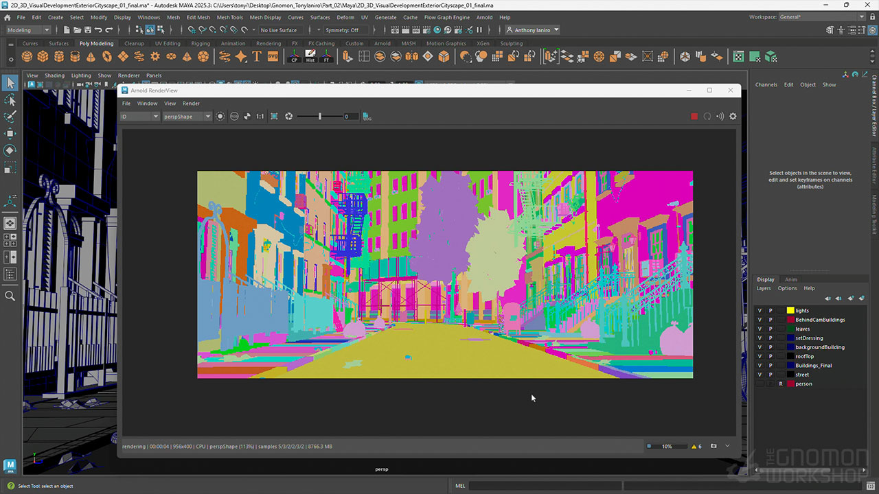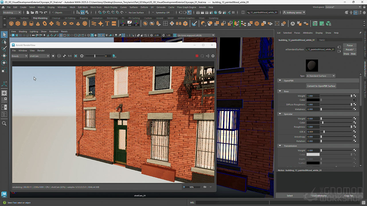 Following a structured approach, Tony’s workshop ensures scenes are optimized for high-resolution rendering with full color, lighting, and textures using Arnold. The workshop covers complete scene texturing, lighting setup, fog integration, and camera placement within Maya. Artists will also learn how to clean and package 3D files, as well as how to render essential passes in Arnold.