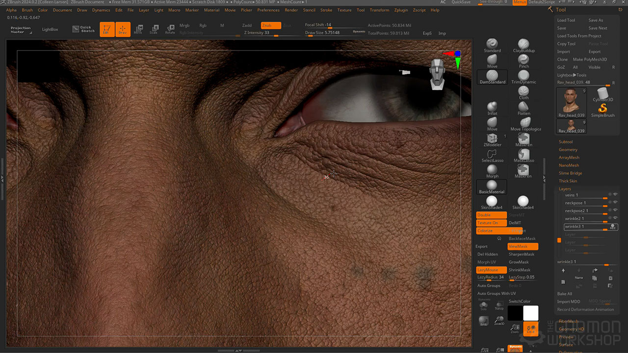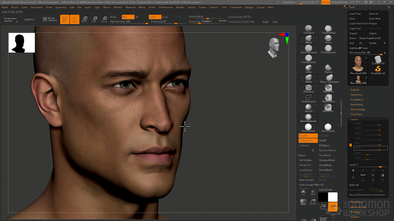 The 3D Scan Store Free Base Mesh and the 3D Scan Store HD Male Head 23 are utilized in this workshop. A .txt file containing links to the other resources that Colleen found helpful with her project is also provided as a project file.
