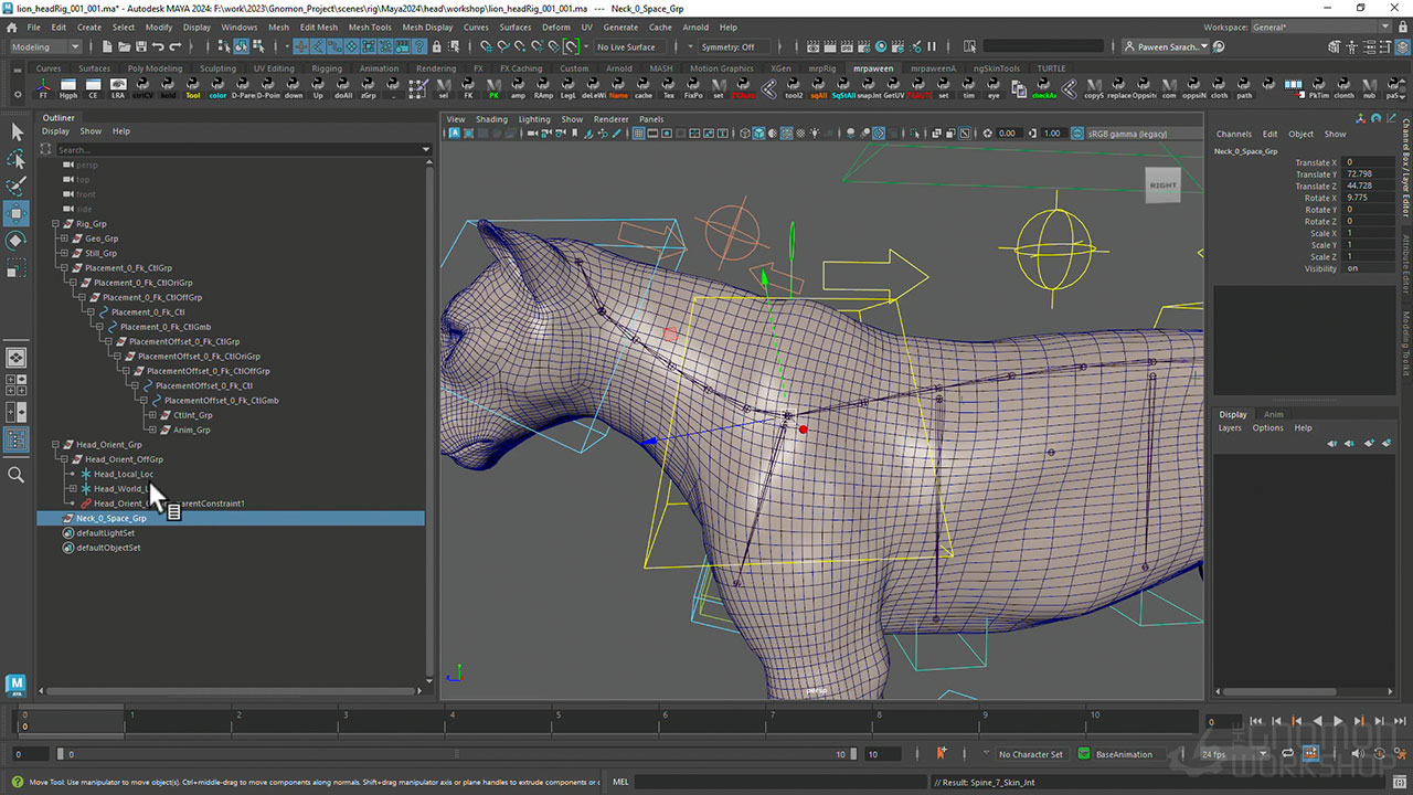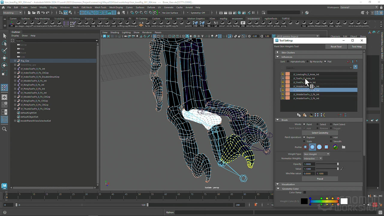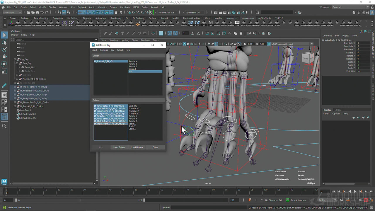 This workshop begins from the basics and works through the creation of the final main-body rigs in a step-by-step process. One of the key components of this workshop is creating the realistic spine, which gives a final output that you’ll see used in VFX production — all without the need for any plugins. You’ll learn how to use the helper Python script to create the generic control rig and how to create a Spline-IK system with realistic behavior to push and pull the chest and pelvis, allowing all components to move together efficiently.