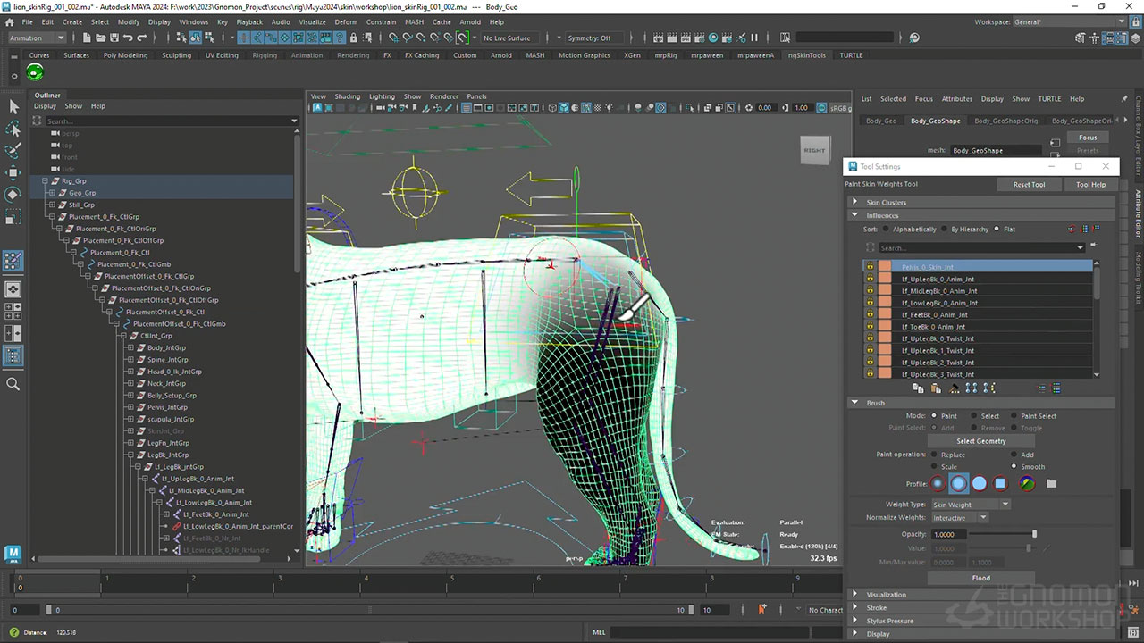 Parween also instructs how to create the FK/IK switch setup for the limbs, as well as the IK stretch setup, and the double FK control structure technique for the toe setup. You’ll learn the Limb Lock technique, the scapula auto aim setup, and discover Parween’s belly trick setup with cMuscleSmartConstraint node. He also covers the skinning weight technique using Maya’s skinning tools.