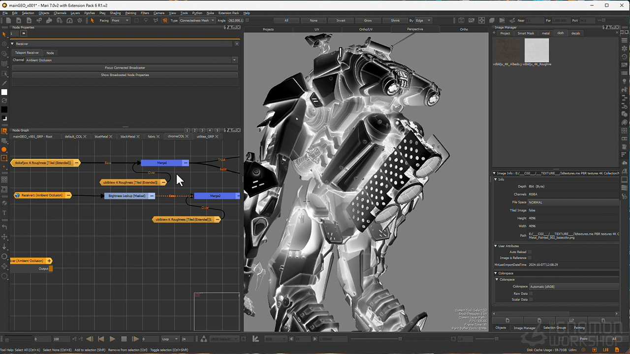 VFX Artist Michal Zsigmund guides artists through the process of using Mari and Gaffer to create stunning, production-ready hero assets for film and TV. Beginning with an exploration of Mari, Michal discusses how to leverage Mari and its Extension Pack to craft high-quality detailed textures, including how to utilize the Smart Mask system that comes with the pack. He then walks through how to export a mesh from Maya using Alembic before diving into Mari’s new Bakery System, introduced in the latest version, which is helpful for baking essential utilities that fuel the Smart Mask system.