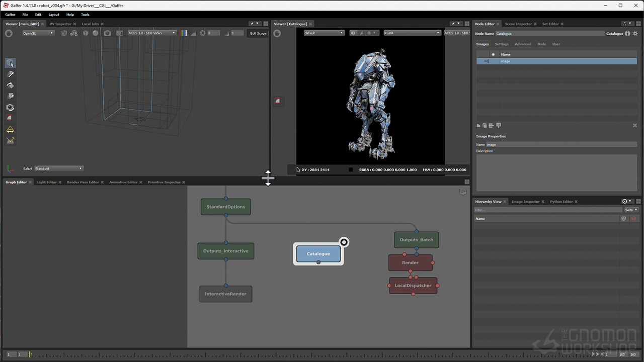From there, Michal focuses on creating the essential diffuse, roughness, and bump maps, sharing the specific techniques that he uses in production to generate professional maps. Artists will also learn how to transfer masks to create secondary high-frequency bump details. Once the texturing phase is complete, Michal exports the textures and transitions into building out the scene using Gaffer. He breaks down each node within Gaffer – the open-source, node-based lighting and look-dev tool developed by Image Engine (similar to Katana) – and explains how each function fits into the studio pipeline.