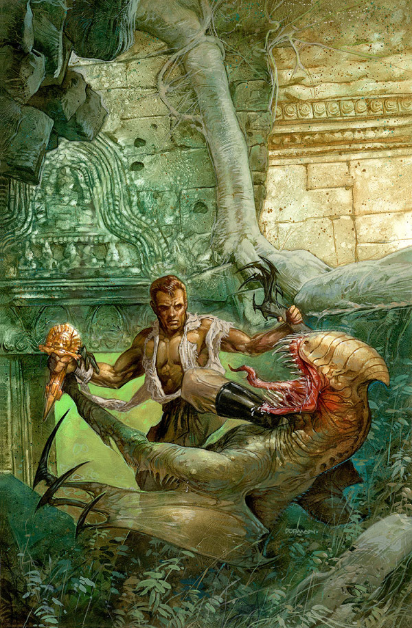 Eisner Award-winning artist and Air Force brat Dave Dorman has lived and traveled around the world, which has noticeably influenced his diverse body of work. Dave attended St. Mary’s College in Maryland, and Joe Kubert School of Cartoon and Graphic Art before leaving to teach himself oil painting. Minus an instructor’s influence, Dorman experimented and adapted unorthodox, oft-imitated techniques, many of which he explains in his Gnomon Workshop DVDs. Dorman’s first big break was a cover for “Heavy Metal Magazine” in 1982. He followed that up with extensive work on Indiana Jones, Star Wars (fans voted him the #1 Star Wars Artist), Alien, Predator, AVP, Batman, Spiderman, G.I. Joe, Magic: The Gathering, World of Warcraft, King Kong, Star Trek, Lord of the Rings, Harry Potter and his own critically acclaimed project, The Wasted Lands.
