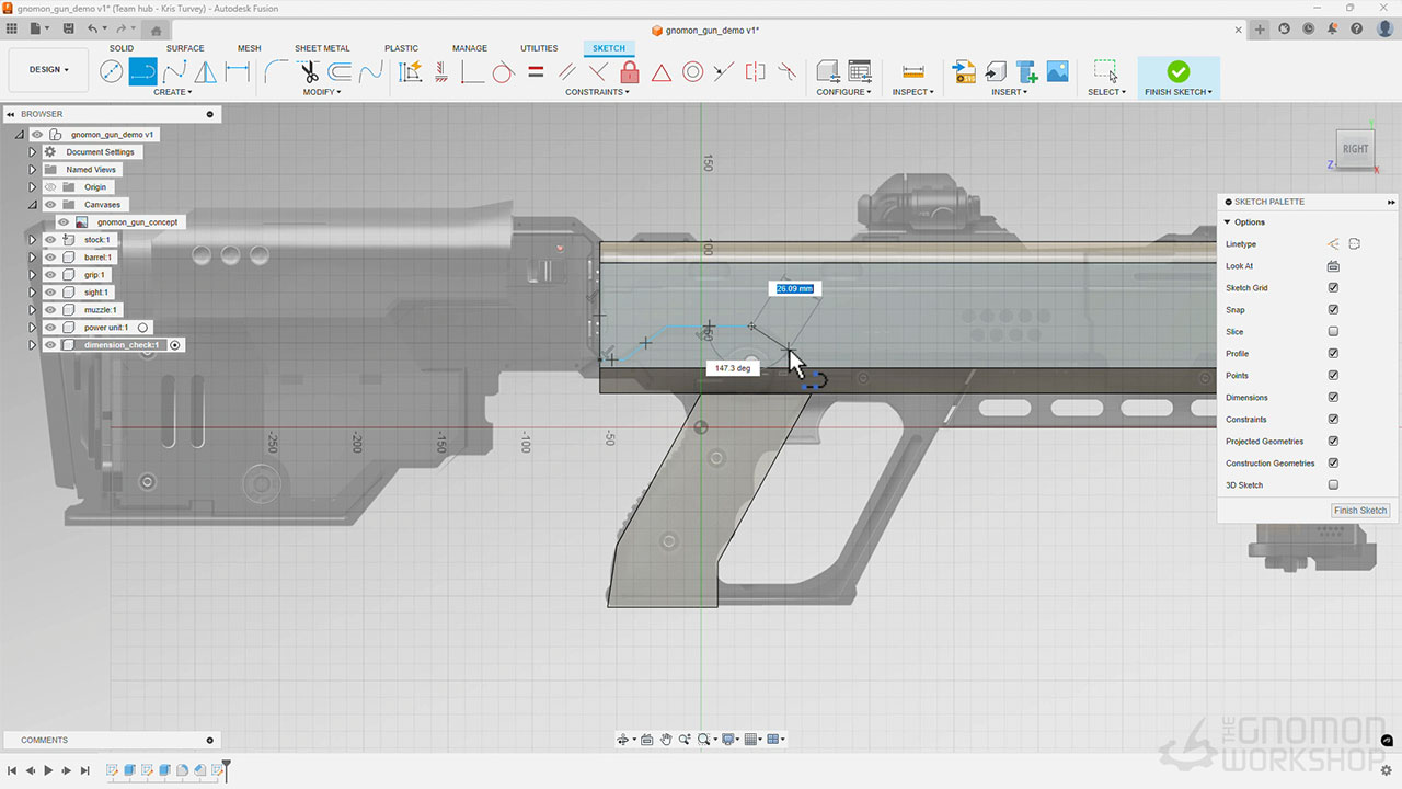 Kris begins with an overview of the main interface before revealing how to create design ideas with simple 2D sketching in the Design workspace. He then demonstrates how to turn your 2D designs into 3D using three different modelling modes: Solids, Surfaces, and Forms, while also explaining how each works and when you might want to use them.