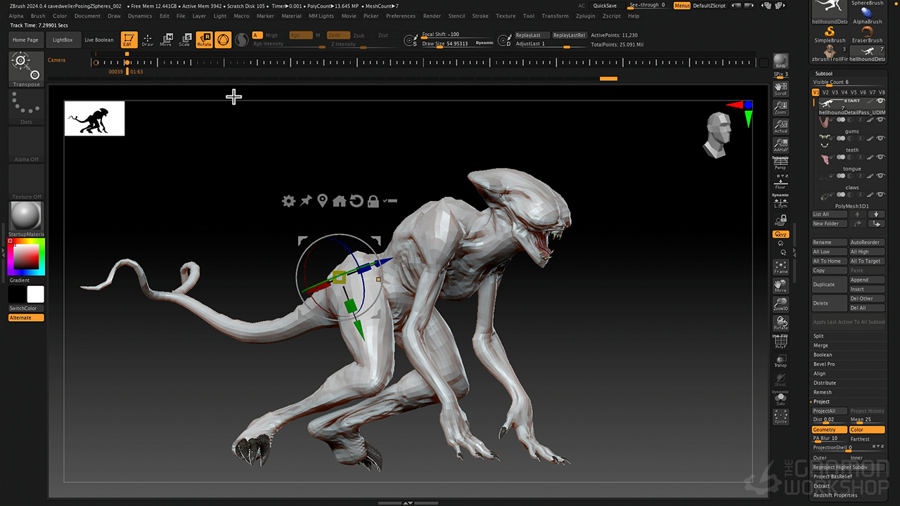 Whether you’re an absolute beginner or an intermediate ZBrush user, this workshop will guide you through 19 comprehensive hours of demonstration to help you master ZBrush 2024. No previous 3D experience is required to complete this workshop, and you can expect to finish the tutorial with a strong intermediate grasp of ZBrush as a sculpting, modeling, and texturing tool.