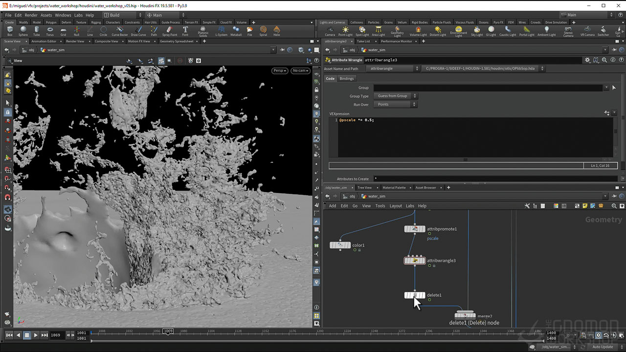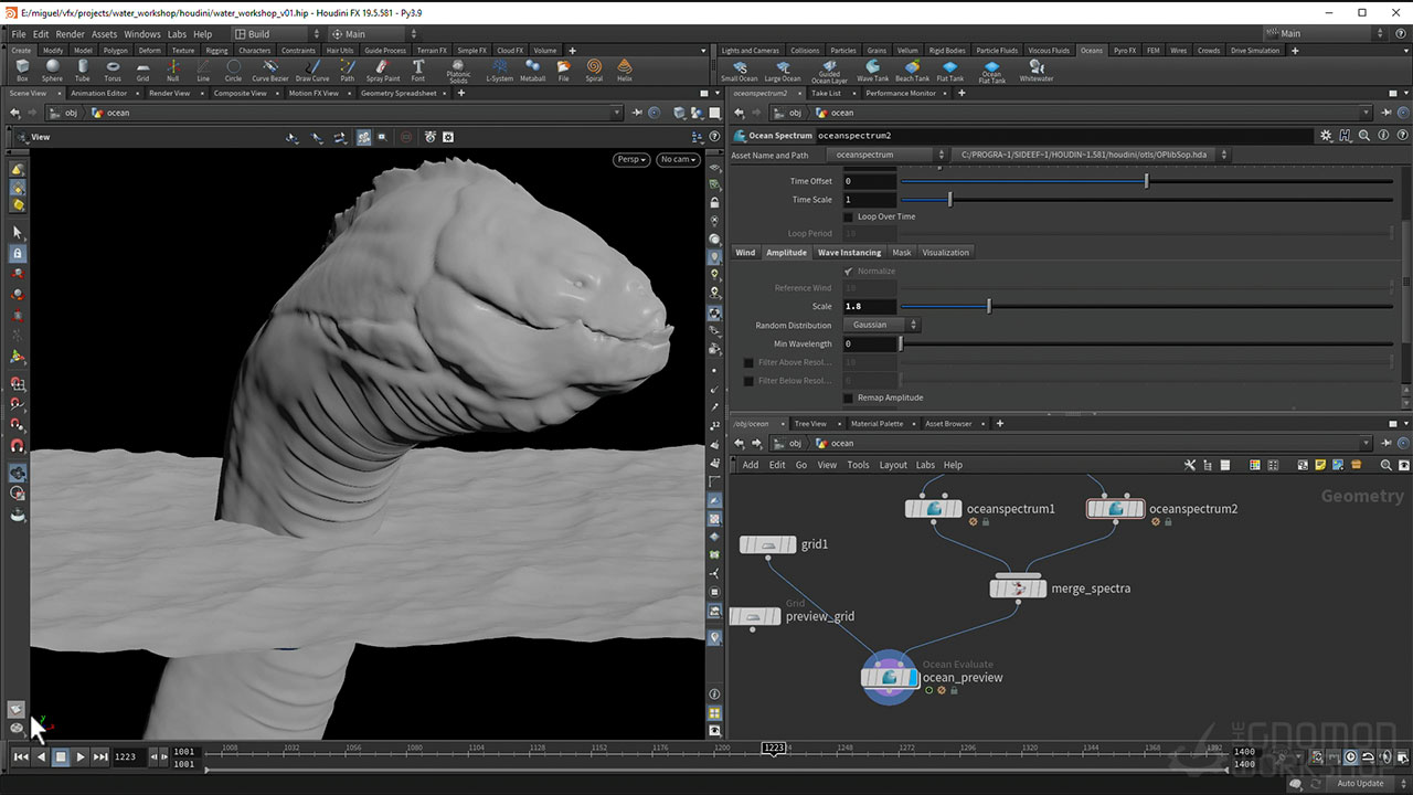 Discover the complete process that goes into executing an epic water simulation shot featuring a sea creature breaching out of the ocean and diving back in. This comprehensive workshop, taught by CG Supervisor Miguel Perez Senent, begins by defining a large ocean surface and then showcasing Houdini’s latest water toolset to simulate interaction with the creature. Using the latest FLIP Solver, you will create the base fluid simulation and dive into tips and tricks to make it more realistic and efficient. You’ll then learn how to generate and blend the mesh of the fluid with the rest of the ocean using some clever techniques and discover how to use the result to define a custom whitewater emission source based on the mesh surface properties and physical characteristics.