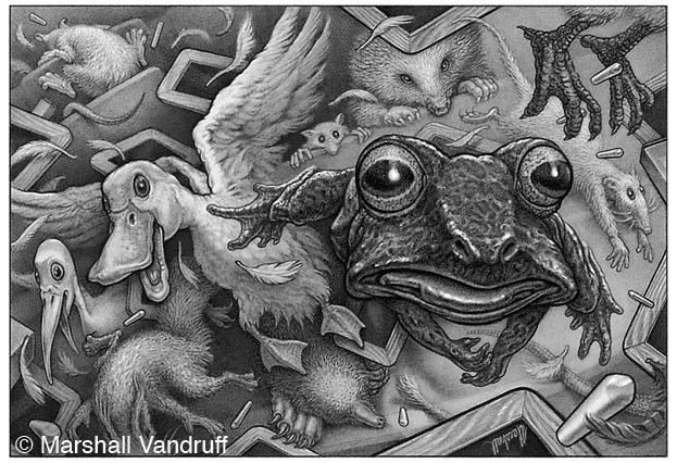 "I had the benefit of discovering Marshall Vandruff's teaching materials many years ago when I first set out to learn how to draw animals and fantasy creatures. Marshall was the first artist to really get me to think about drawing in three dimensions and I still refer to his work to this day! Marshall's teaching style is so wonderfully accessible in its direct and clear approach to drawing realistic animals by thinking around the forms and seeing them as dimensional objects on the page. He manages to break down complex ideas and shapes into easy to understand and easy to reproduce forms that have stuck with me for years and continue to guide my hand to this day."