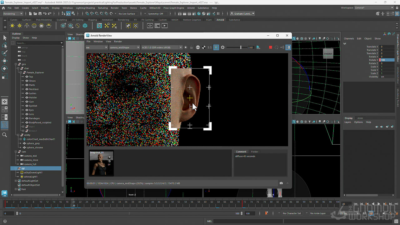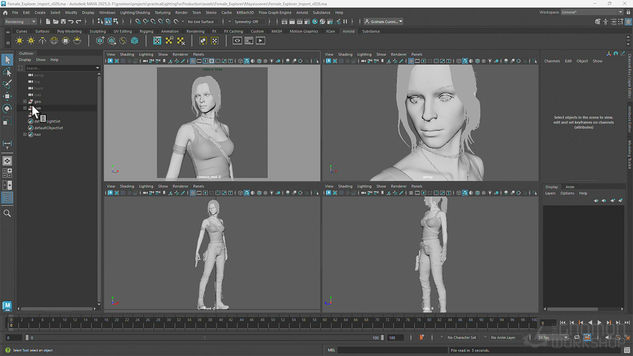 Throughout the workshop, Graham shares practical insights and industry workflow strategies to help you get your shots approved in a production environment. His Test Objects Maya file is provided as a project file with this workshop.